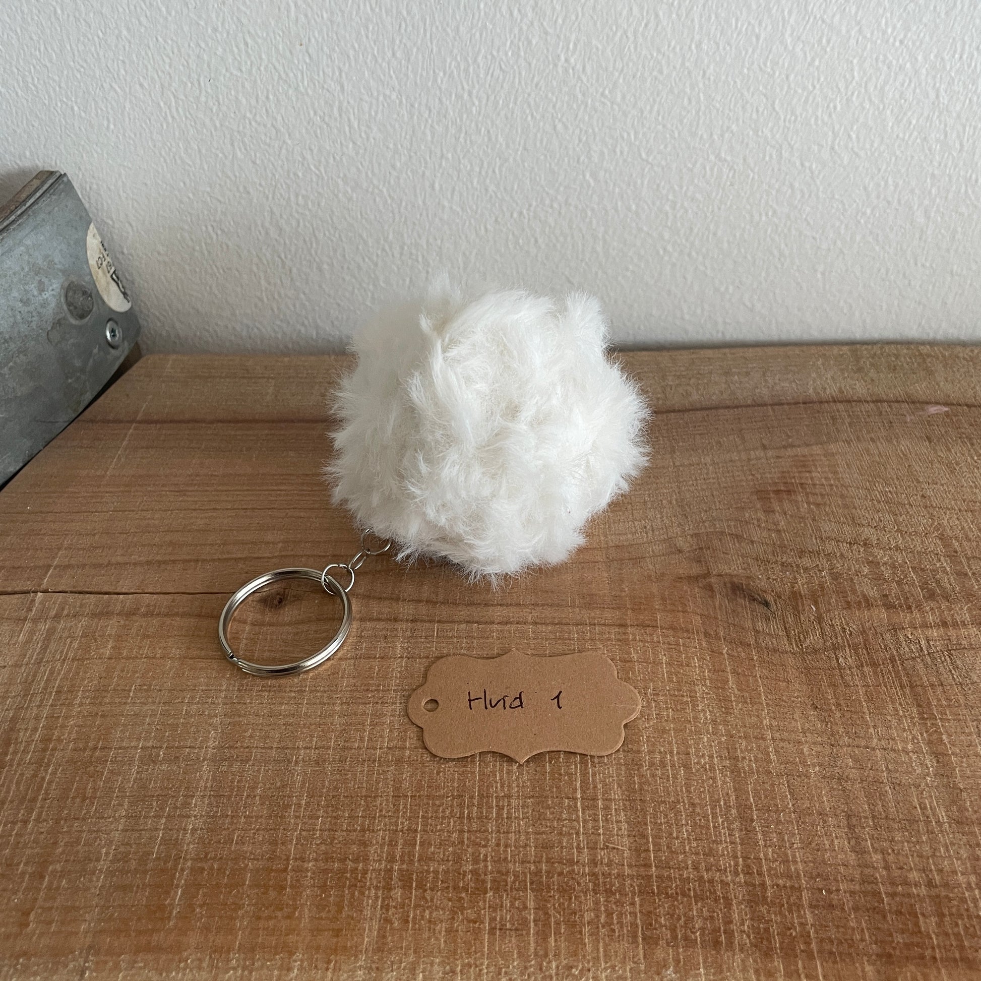 Finished pompom keychain – White 1