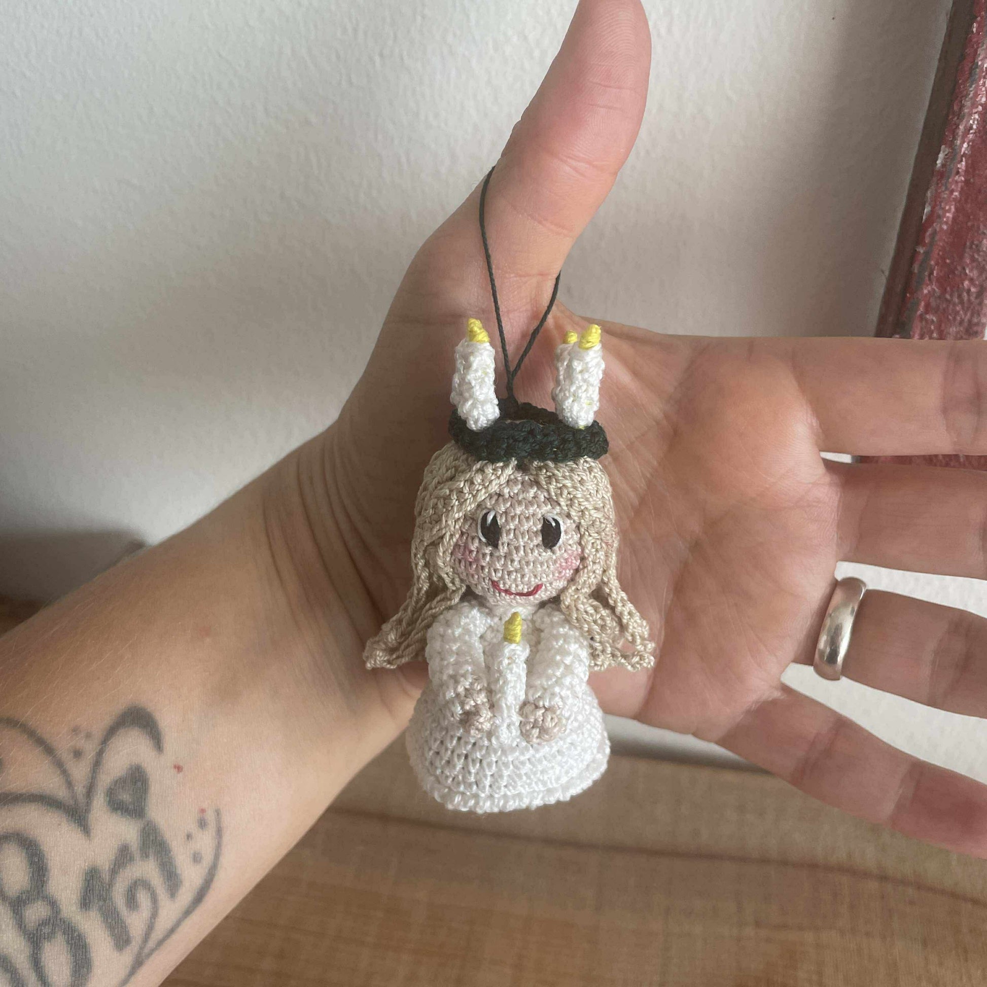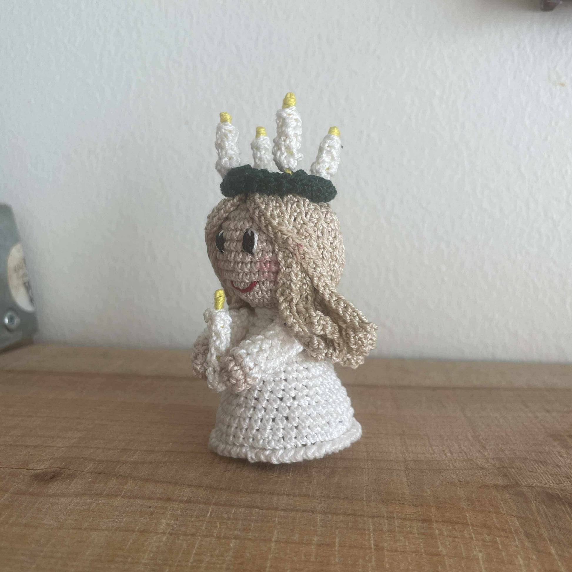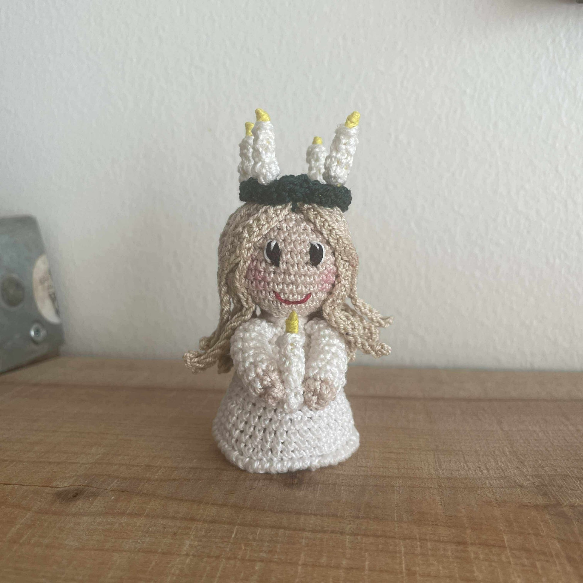 Hækleopskrift på Kayas Luciabrud - Opskrift til den yndigste lille luciabrud, som er inspireret af Kayas Engel, som oprindeligt er tegnet af min datter Kaya.