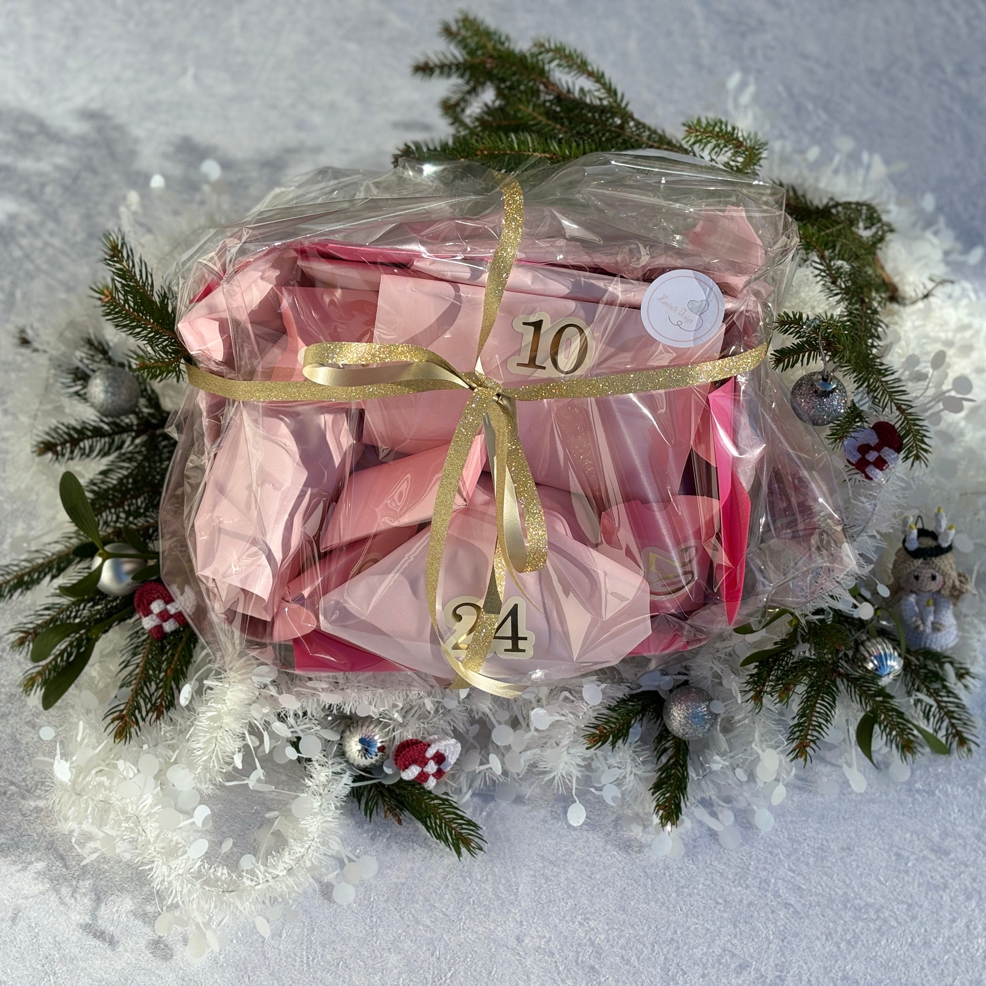 Kalenderen leveres i en fin opbevaringskasse, klar til at sætte stemningen for en hyggelig og kreativ december.