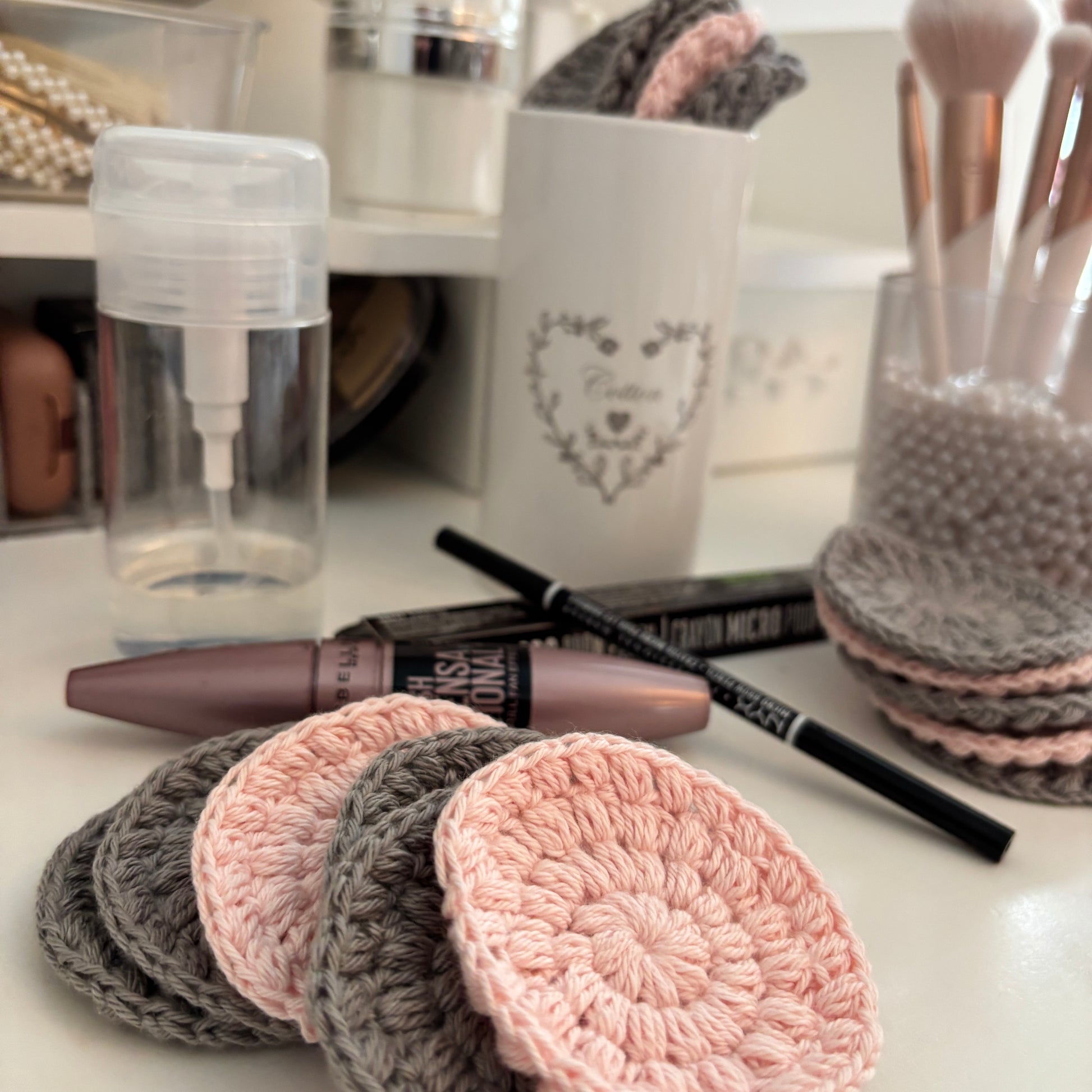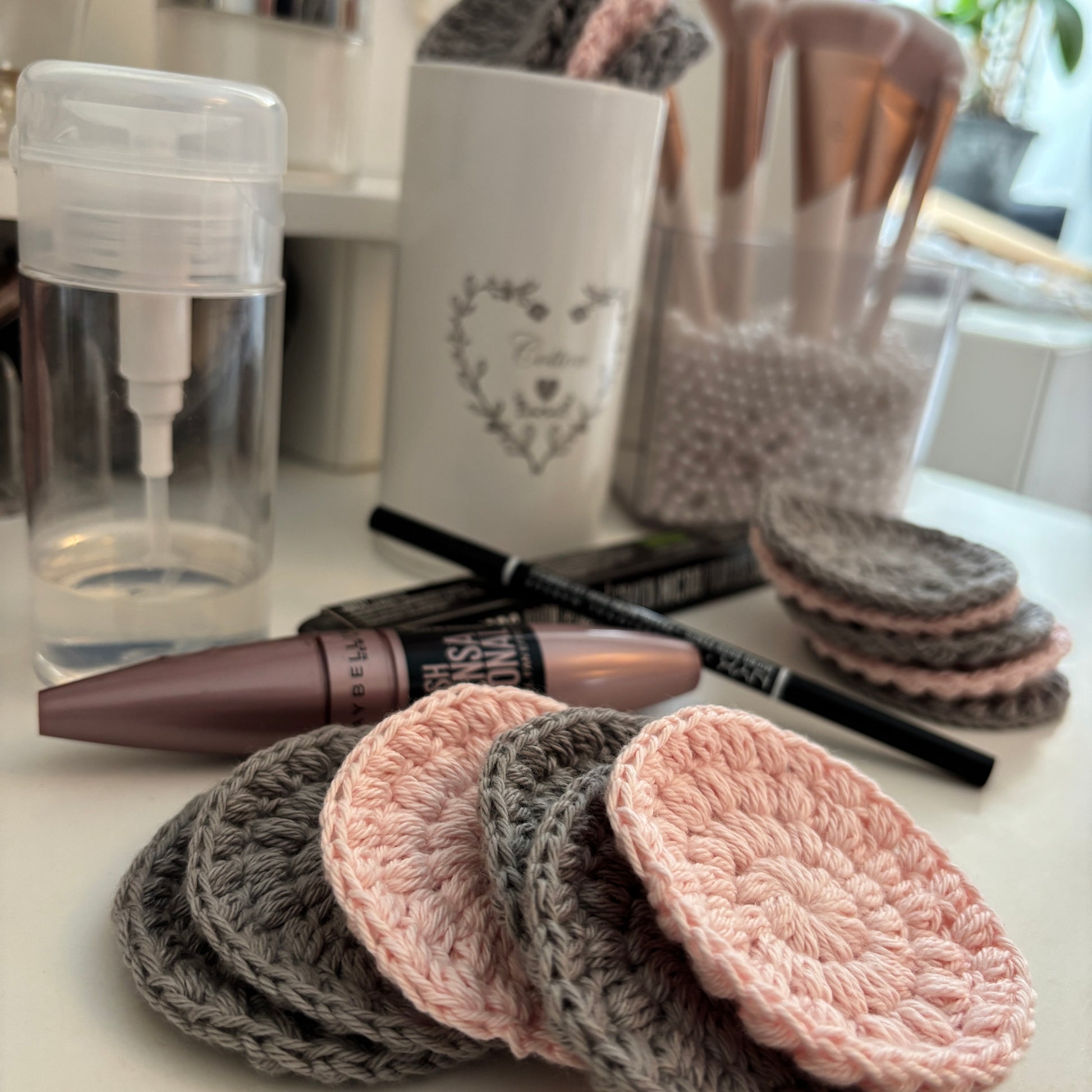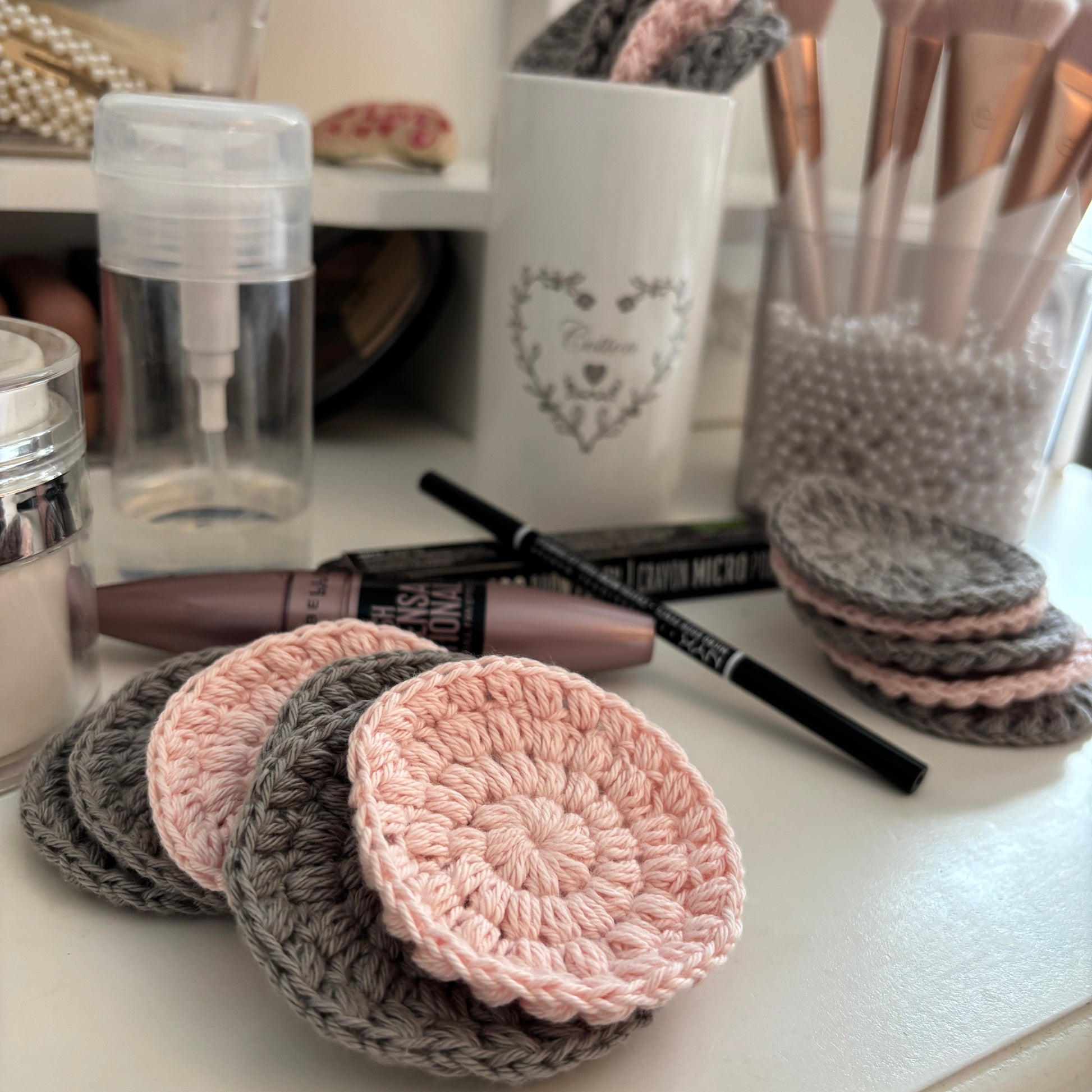 De er lidt større end øvrige hæklede rondeller, så der er god stor overflade til rensevæsken/make up fjerneren, samtidig med at man holder fast i den.